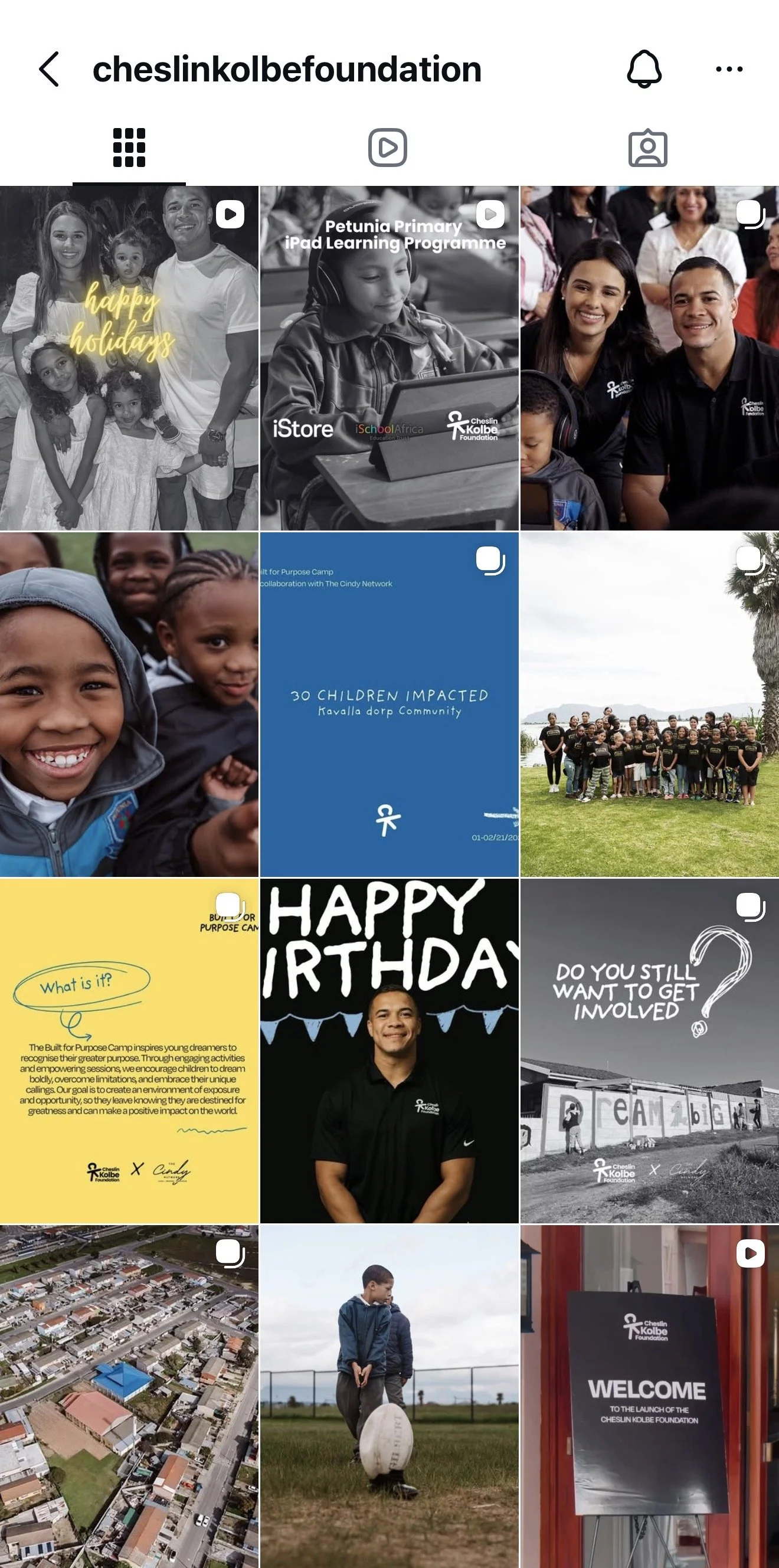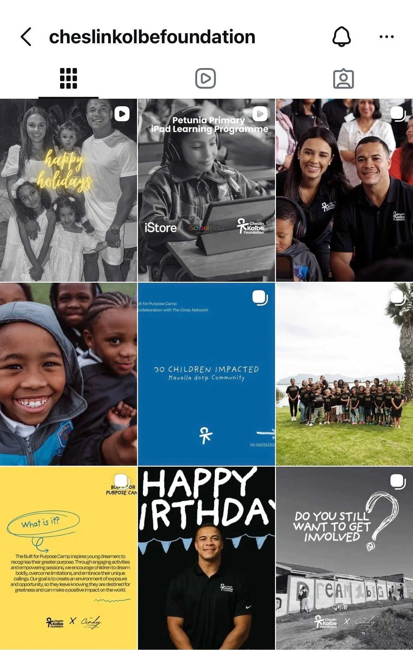Support the Cheslin Kolbe Foundation in building a strong and sustainable communications and creative structure that would clearly communicate its mission, expand its reach, and strengthen engagement with partners, donors, and the community. The focus was on developing systems, storytelling, and visual consistency to share the Foundation’s impact in an authentic and meaningful way.